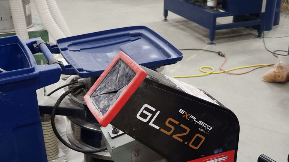This custom multi-color sign features a handcrafted walnut frame and hand cast logo made from green, blue and clear bottle glass collected in both Detroit and Knoxville. It makes a superb addition to the Urban Tech Exchange HQ in Detroit, MI!